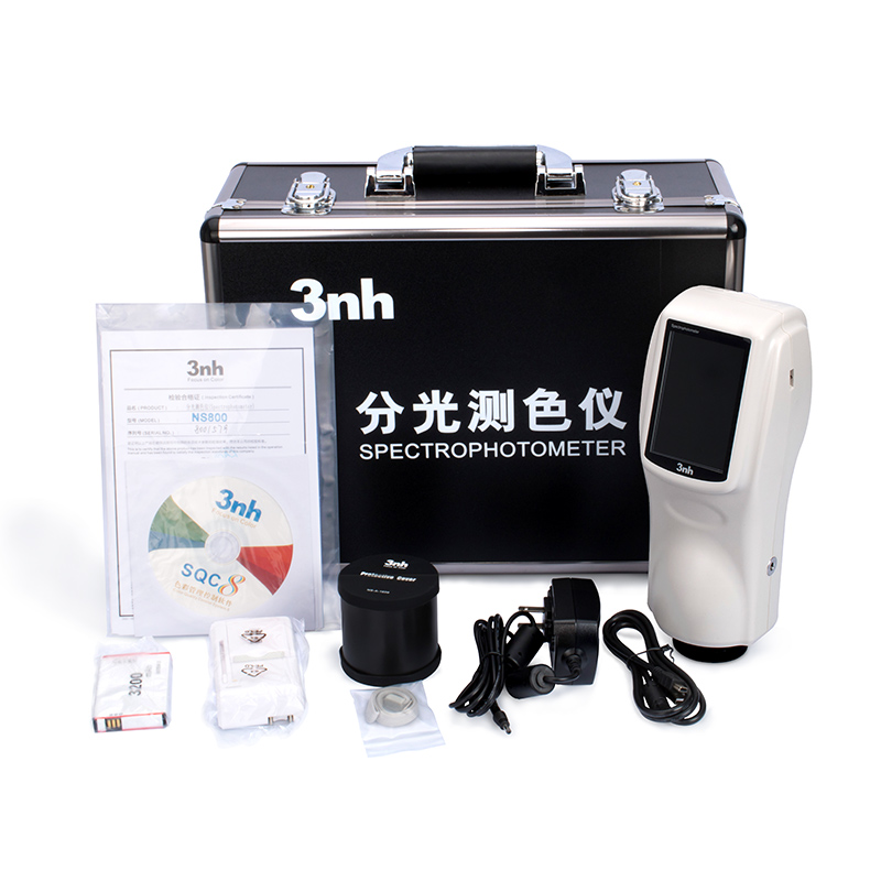 NS800 spectrophotometer uses the principle of combination LED precision spectroscopy, separates the light according to a certain wavelength interval, and adopts groups of sensor array to perform sensitive analysis. NS800 spectrophotometer with higher accuracy is very sensitive to any colors. It not only can measure L*ab value and delta E value accurately, but also can display spectral reflectance curve which can realize color matching function and calculate the real parameters of various color formulas.